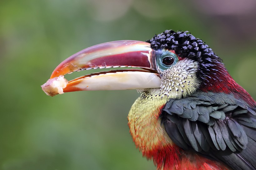 Этот вид арасари очень умный и сообразительный. Эффектных кудрявых птиц часто держат дома, они очень дружелюбные и быстро обучаются командам.