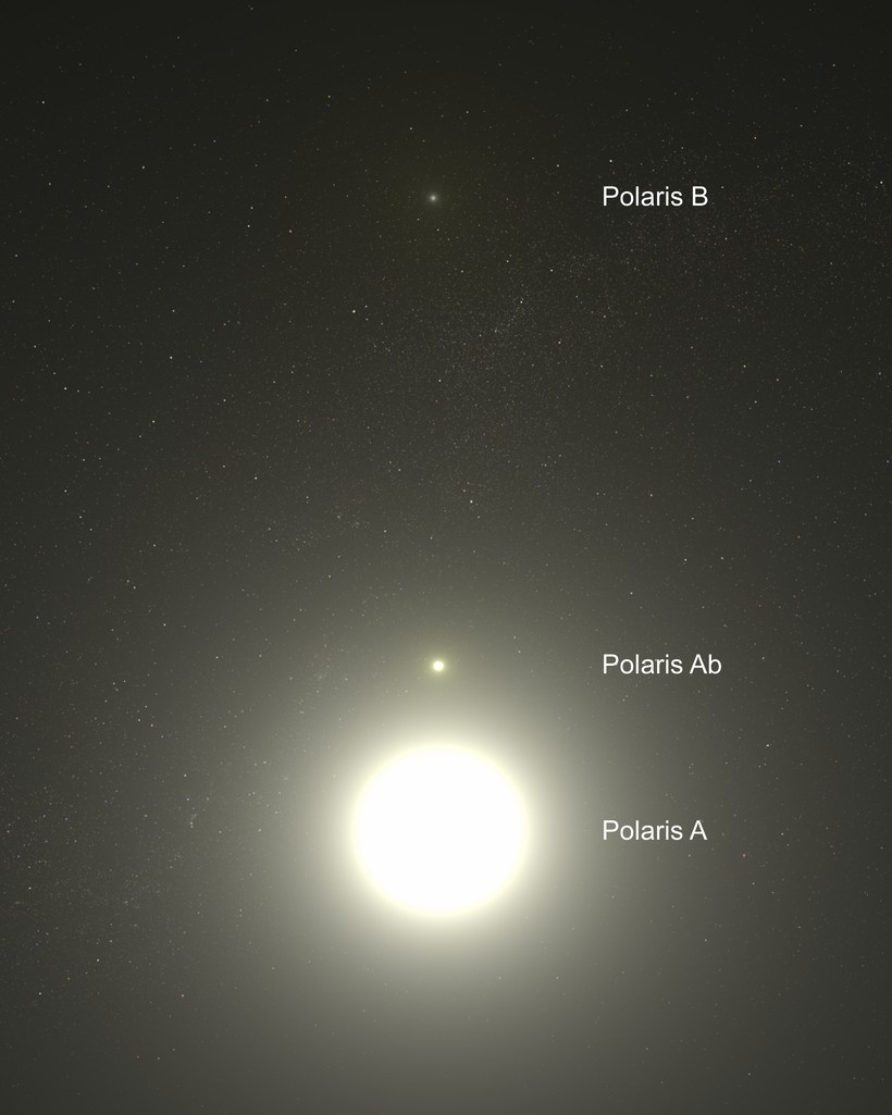 Полярная А и Полярная Ab образуют двойную звезду, вокруг которой вращается третья — Полярная Р. По своей массе она близка к Полярной Ab, лишь немного уступая ей, и располагается настолько близко к двойной системе, что ее удалось обнаружить только благодаря снимкам телескопа «Хаббл».
