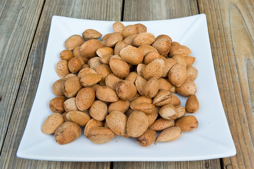 Впереди слева медленно собирается миндаль.