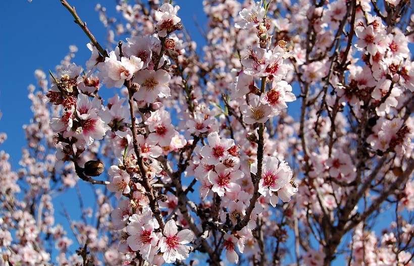 На острове миндаль цветет белым, нежно-розовым и ярко-розовым:
