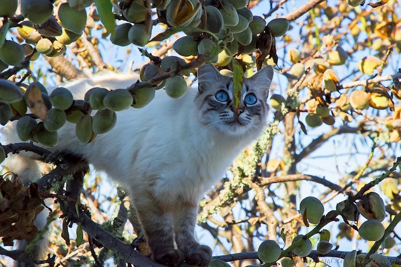 В начале сентября оболочка созревших плодов начинает лопаться. На фоне белого кота особенно красиво и наглядно.