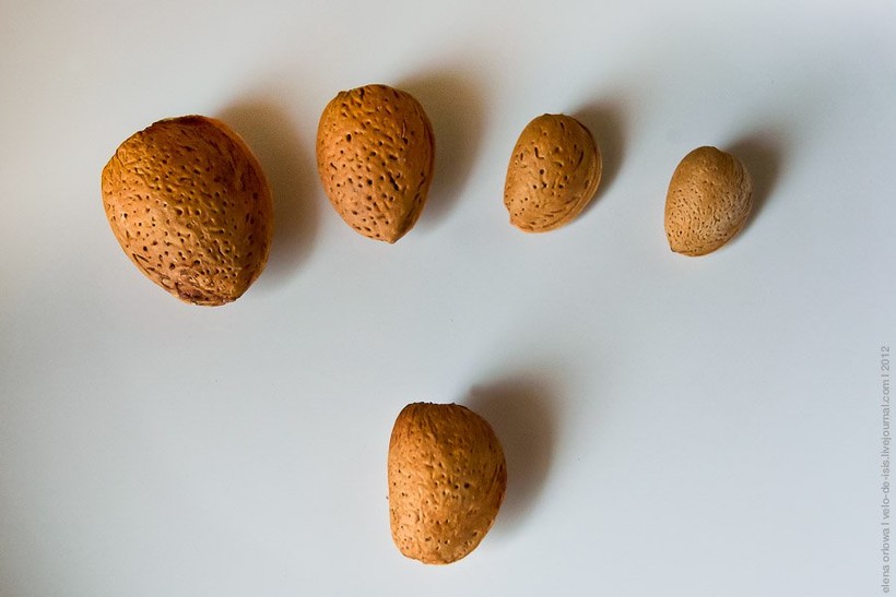 У нас растут два сорта миндаля. Второй сорт — более круглый, гладкий и помельче.