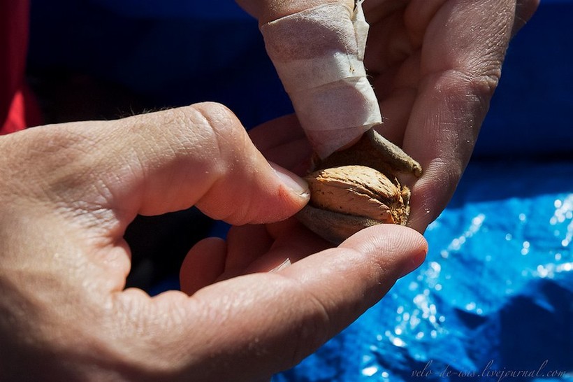 Расскажу теперь, как собирается миндаль.
