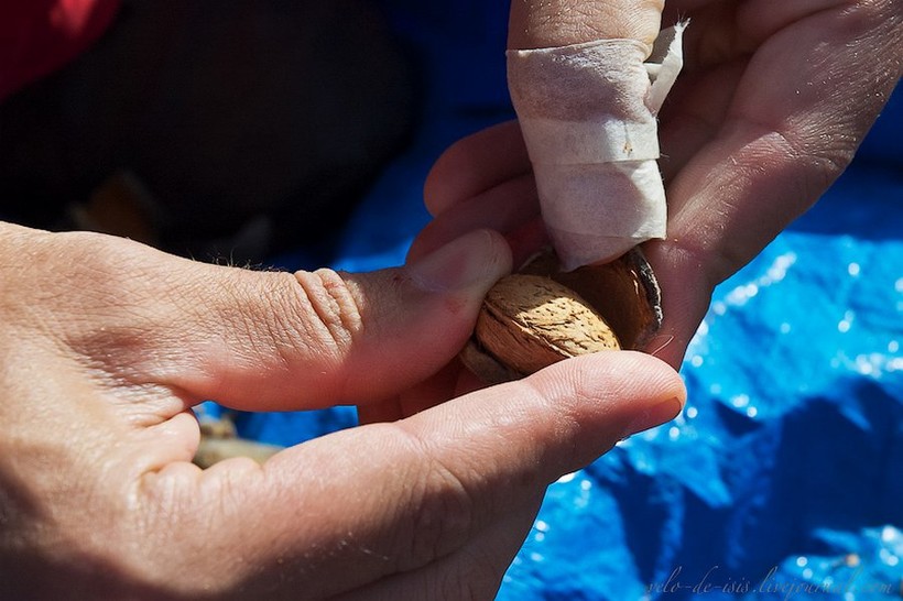 Раньше миндаль раскалывали вручную, занимались этим женщины. Очень долгая и низкооплачиваемая работа. До сих пор на празднике миндаля проводятся конкурсы на самую лучшую и ловкую орешницу.