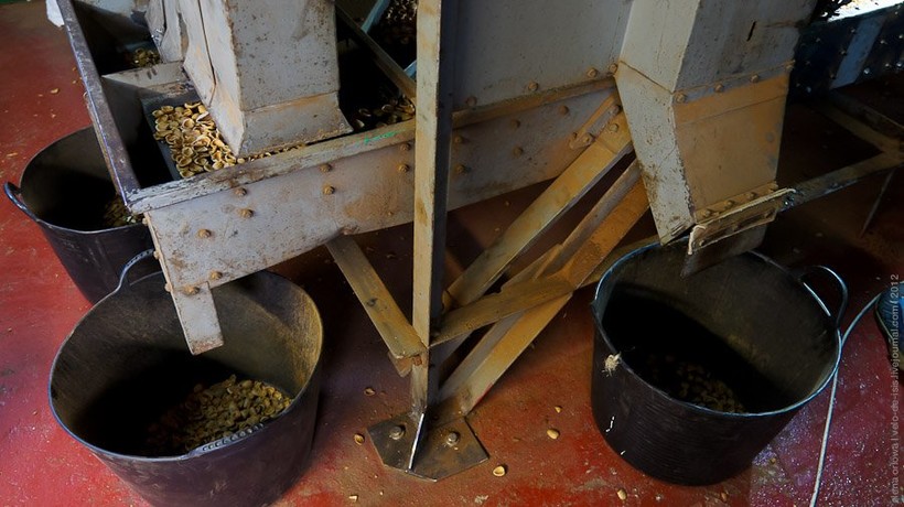 Через сетки падает сам орех, а через разные выходы — разного размера осколки скорлупы: