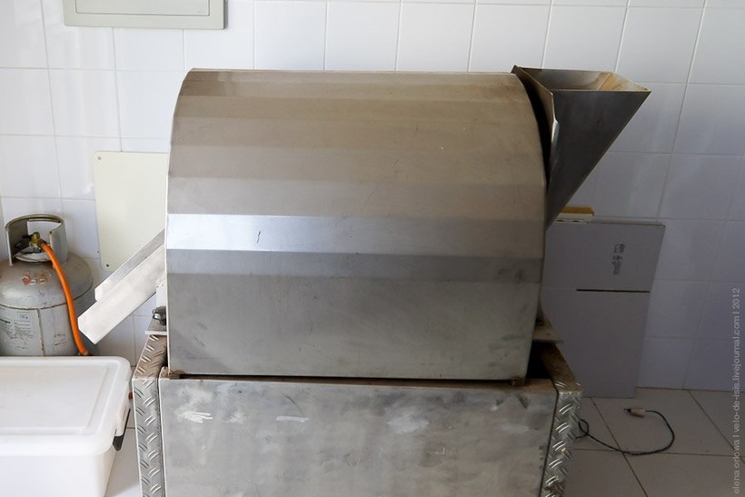 Вот в этой печке его крутят в цилиндре и чуть поджаривают (40º) около 45 минут. Потом миндаль до следующего утра остывает: