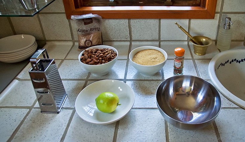 Теперь еще маленький рецепт из нашей местной кухни — пальмерский сыр из миндаля. Что-то очень похожее на марципан. Для этого понадобится вот это: