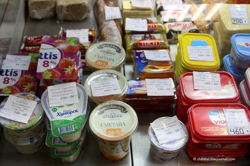 Сметана — 240 рублей за маленькую баночку, творог — больше 1000 рублей за килограмм, йогурты — по 80 рублей.