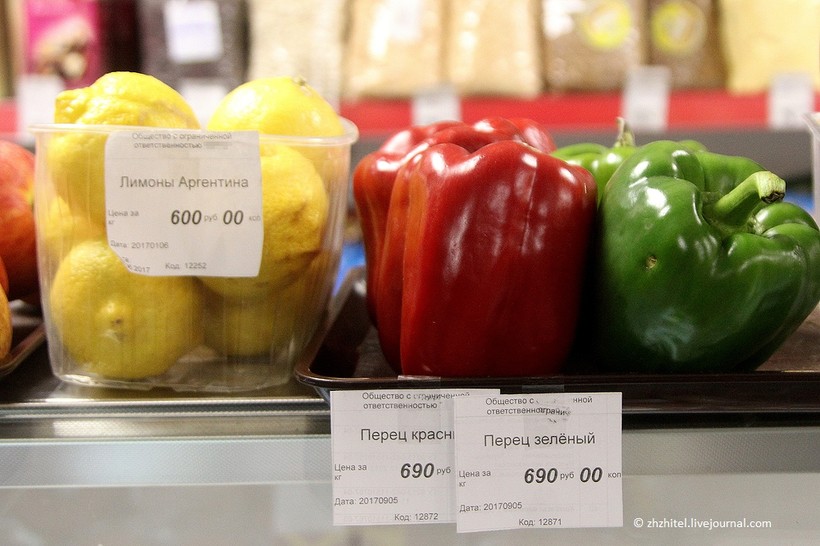 Любите чай с лимоном? Лимоны по 600 рублей за килограмм, перец аж по 690.