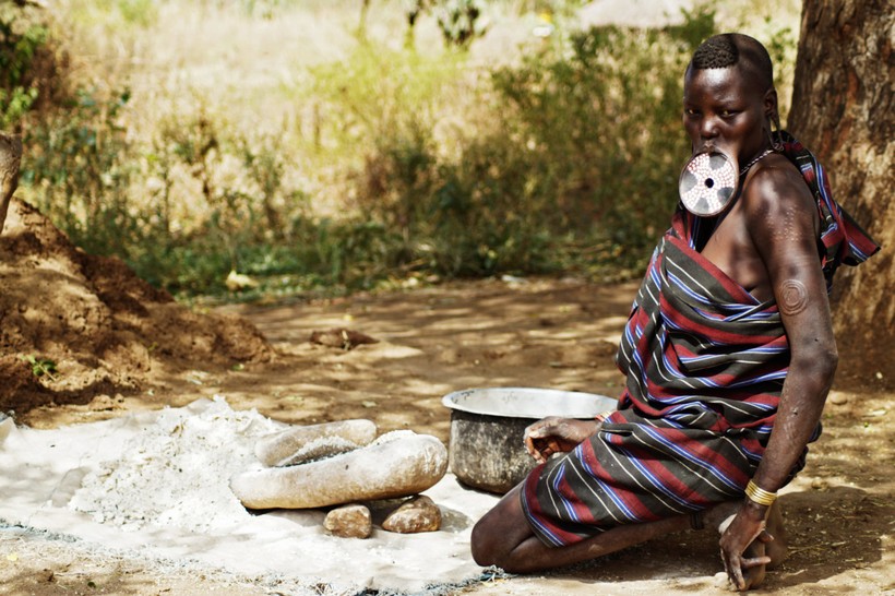 Один аксессуар особенно заставляет мурси выделяться: красочная, расписная глиняная тарелка, которую женщины вставляют в нижнюю губу. Подобный обычай когда-то поддерживали многие народы Африки, но сегодня он сохранился только в этом племени и у их соседей — сури.