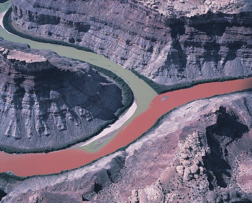 Место, где Грин-Ривер впадает в реку Колорадо находится на территории национального парка Каньонлэндс, штат Юта. В этом удивительном месте зеленые воды Грин-Ривер впадают в Колорадо, имеющую кирпичный оттенок.