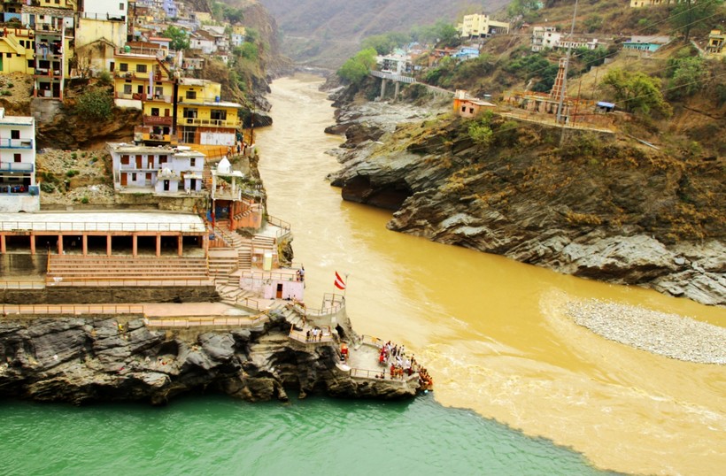 Эти реки, текущие в Гималаях, меняют цвет в зависимости от наступления сезона дождей или засухи, но разница между ними всегда очевидна. При слиянии Алакнанды и Бхагиратхи образуется река Ганг.