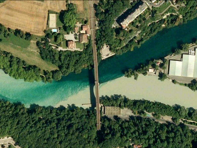Участок впадения реки Арв в Рону является наиболее знаменитым местом в Европе, где можно наблюдать свадьбу рек. Наибольший контраст между бирюзовой Роной и мутно-серыми водами Арва наблюдается в теплый сезон, с конца весны до конца осени.