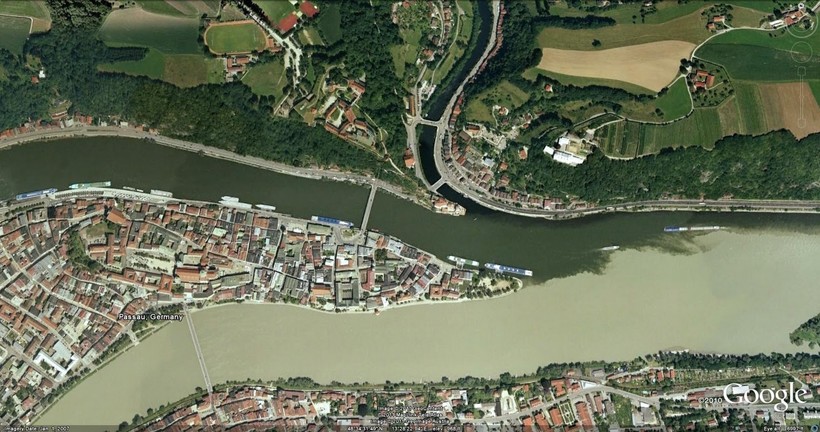 А в этом немецком городе Пассау сливаются сразу три реки разного цвета, что выглядит просто фантастически красиво.