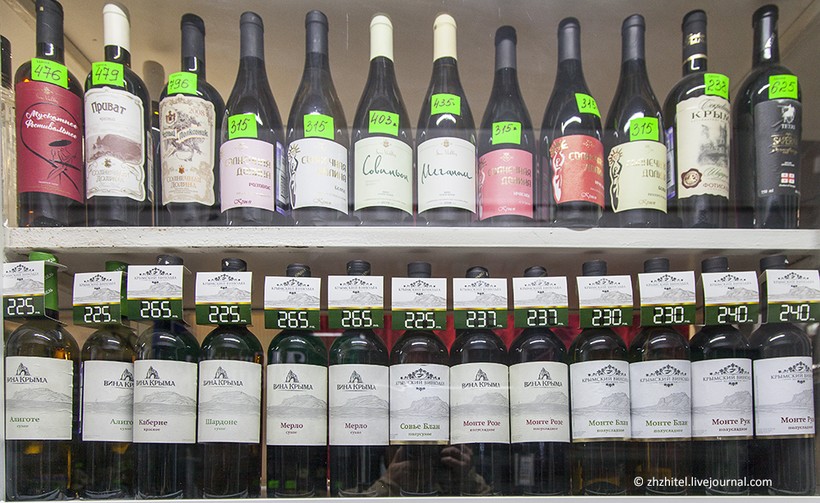 Вот еще полка. Дешевле, чем в Москве, раза в полтора. Еще будет отдельный репортаж про винзавод в Коктебеле, там мне очень нравится.