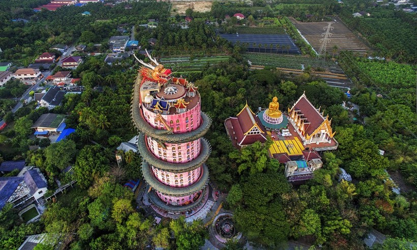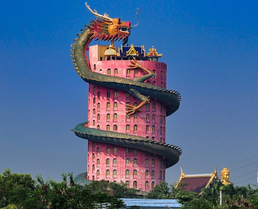 Накхон Патхом — древнейший город Таиланда, расположенный в 50 километрах от Бангкока. Именно сюда приезжают туристы, мечтающие увидеть 50-метровую розовую башню, вокруг которой извивается огромный мифический дракон. Это один из самых удивительных храмов страны Ват Сампхан (Wat Samphran), или Храм Дракона.