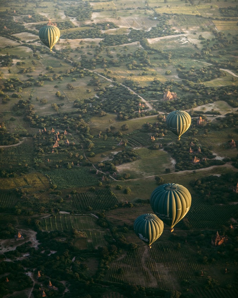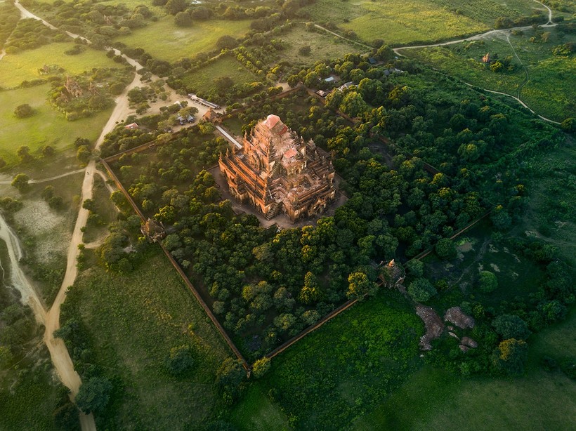 На каждой фотографии изображен один из тысяч буддийских храмов, святынь и пагод, построенных в обширных лесах Багана, Янгона и Мандалая. Несмотря на то, что все эти здания возвышаются над деревьями, оценить их невероятному красоту с уровня земли невозможно. Зато воздушные фото Караниколова эффектно демонстрируют удивительный масштаб и неожиданную симметрию построек.