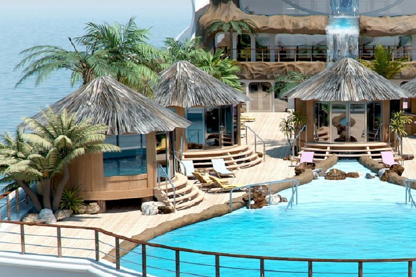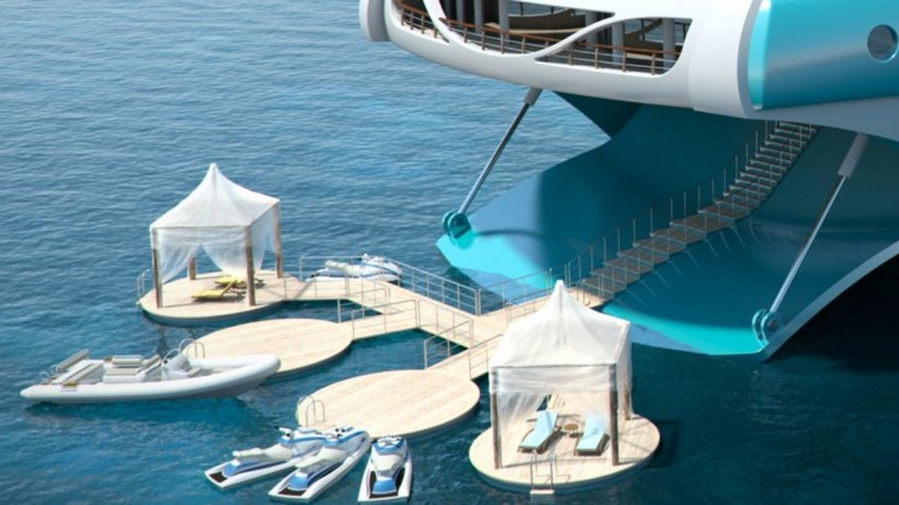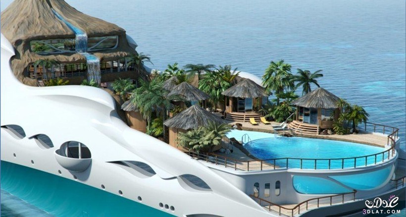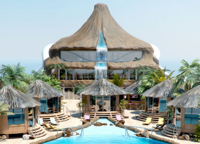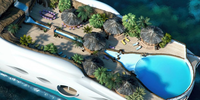 Длина футуристического передвижного острова составляет 90 метров, а максимальная скорость — 15 узлов, или около 30 километров в час. Добраться до него можно на вертолете или катере. Удивительная яхта снабжена двумя палубами, баром, spa-салоном, хижинами с соломенными крышами и комфортабельными комнатами, бассейном в виде лагуны, пляжем и тропической растительностью. Иными словами, здесь вы найдете все, что есть на самом прекрасном тропическом острове.