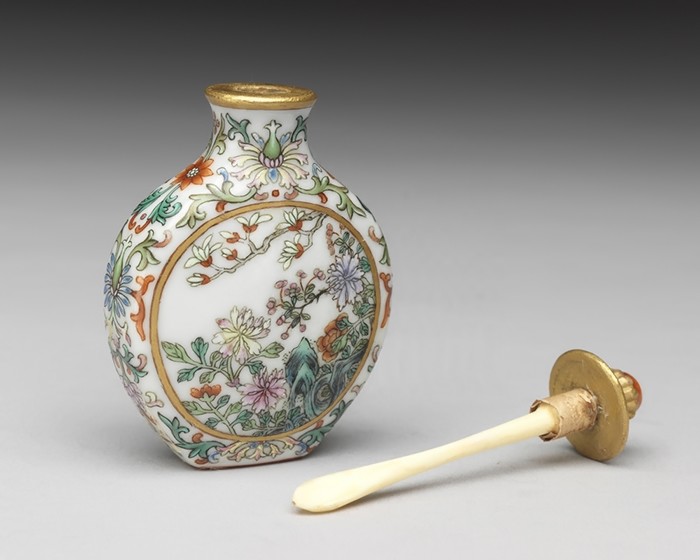 В XIX веке было популярно нюхать табак. Флакончики для него расписывали вручную и украшали полудрагоценными камнями. Особенно ценились пузырьки, расписанные внутри. К каждой емкости прилагалась ложечка для зачерпывания табака.