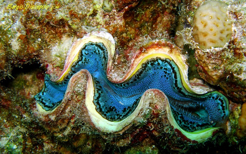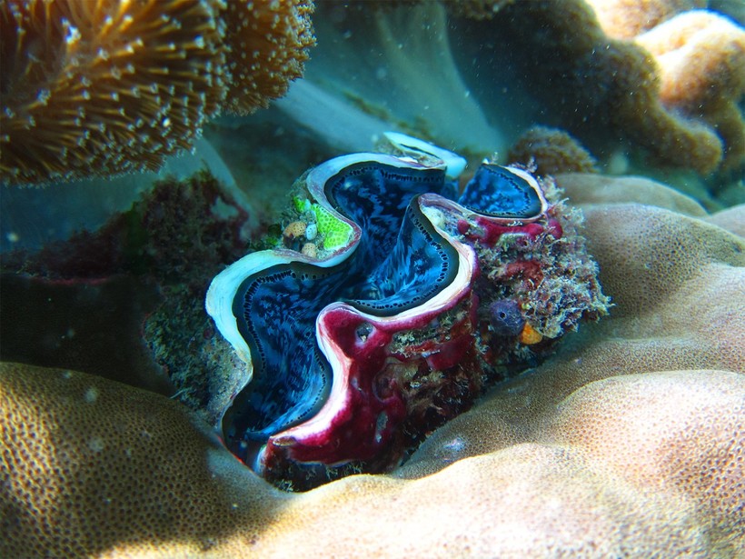 Гигантская тридакна (лат. Tridacna gigas) относится к классу двустворчатых моллюсков и встречается в теплых водах Индийского и Тихого океанов. Она является одним из обитателей коралловых рифов. Помимо грандиозных размеров, этот моллюск имеет и очень необычную окраску — от серо-зеленых до сине-фиолетовых оттенков. Все дело в том, что в складках его мантии обитают простейшие организмы — одноклеточные водоросли. Эти водоросли, помимо того, что сами служат едой для тридакны, так еще и снабжают ее питательными веществами, которые сами вырабатывают.
