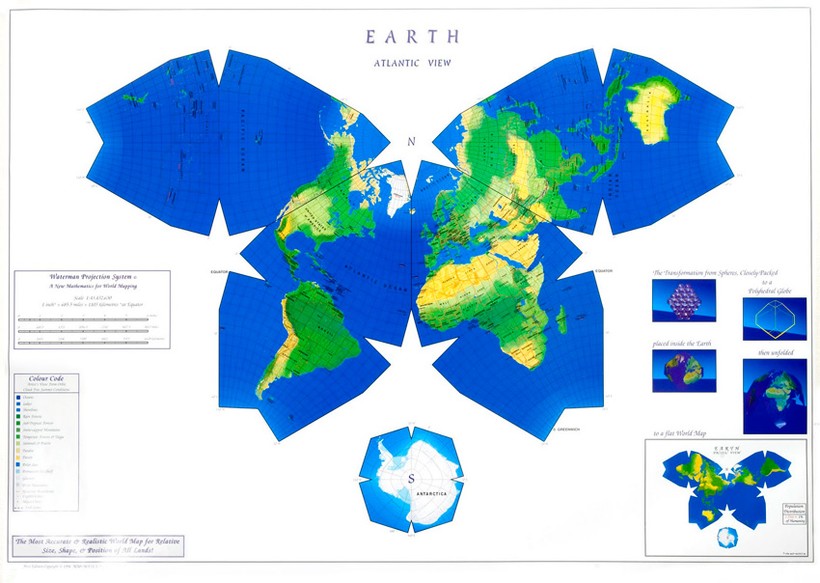 Эта полиэдрическая проекция получила свое название по форме бабочки, а создана она была в начале XX века американским картографом Бернардом Кахиллом.