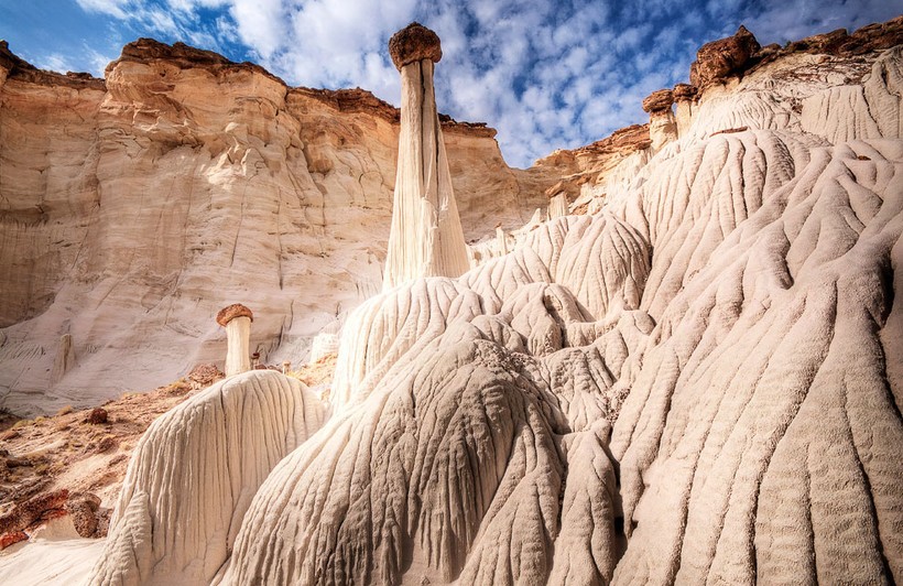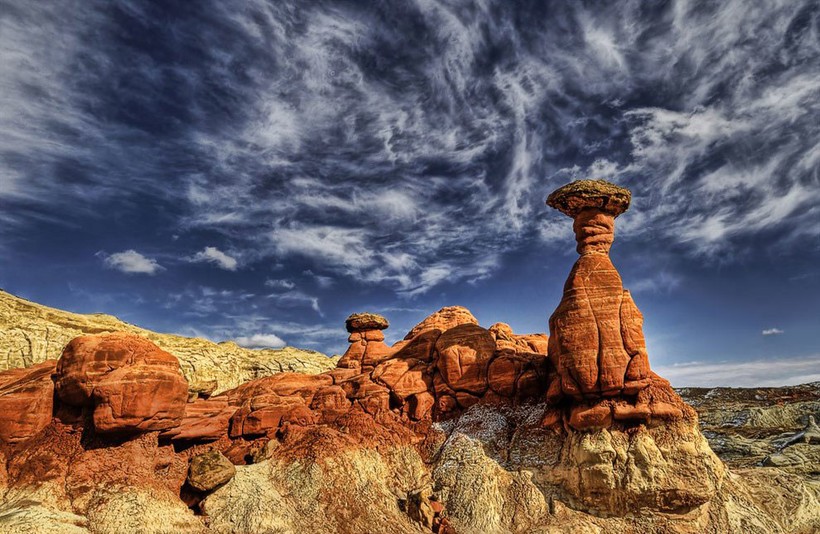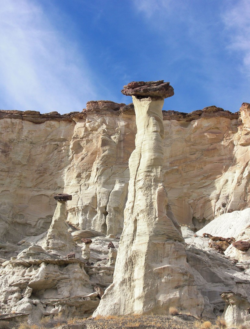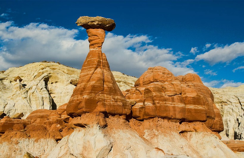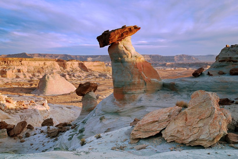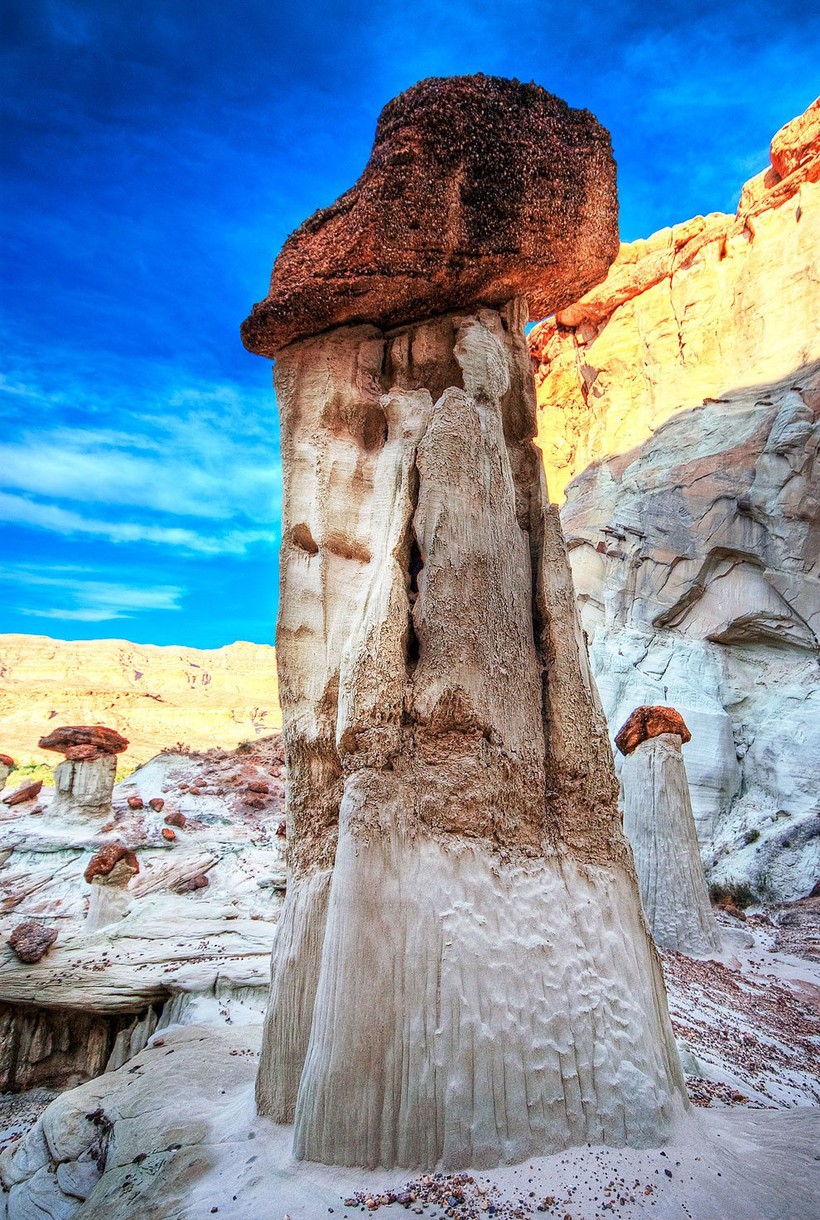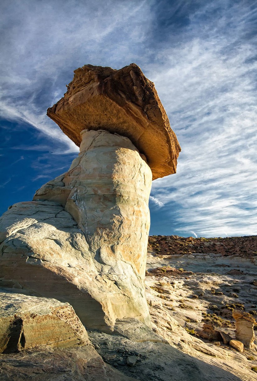 Чаще всего грибообразные скалы встречаются на юго-западе США. Диаметр их основания куда меньше верхушки, что и делает их сходство с грибами более явным. По сути, это выветренные скалы. Просто их основание состоит из легко разрушаемых пород, а верхняя часть — из более устойчивых.
