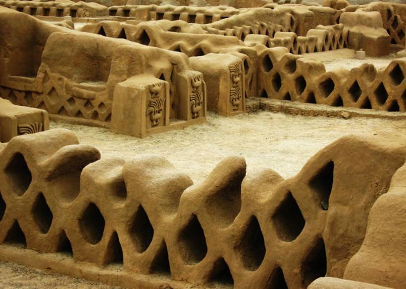 Чан-Чан строился преимущественно из самана, смеси глины и соломы, и считался самым большим городом из самана в мире. Такой материал был выбран неслучайно, ведь в то время город располагался в одной из самых засушливых прибрежных пустынь, где за весь год выпадало всего около 20 миллиметров осадков. А в таком жарком климате, как известно, дома из самана могут прекрасно стоять сотни лет. Вот почему удивительные строения древнего города так хорошо сохранились до наших дней.