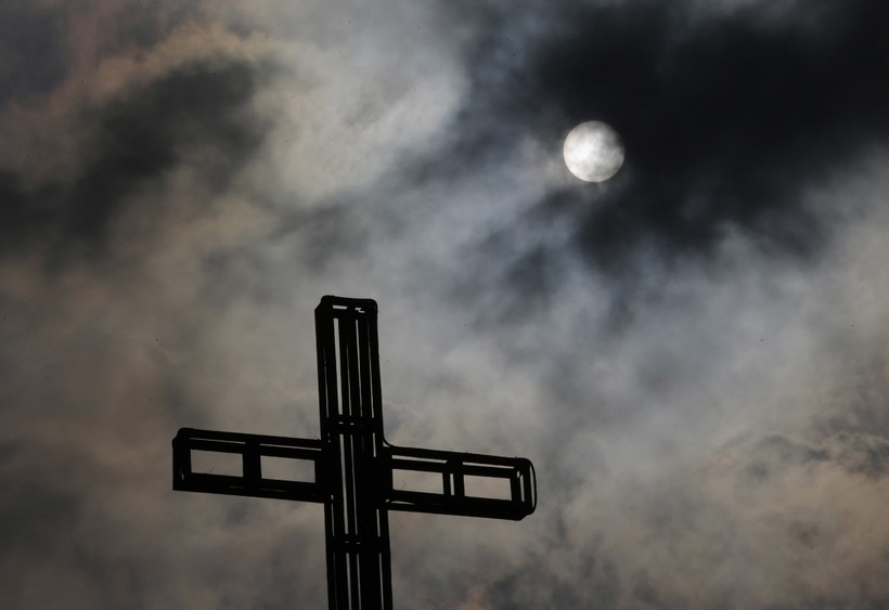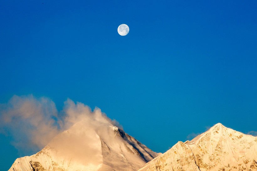 Канзас, индеец Канза на вершине Капитолия на фоне луны в апреле 2015 года