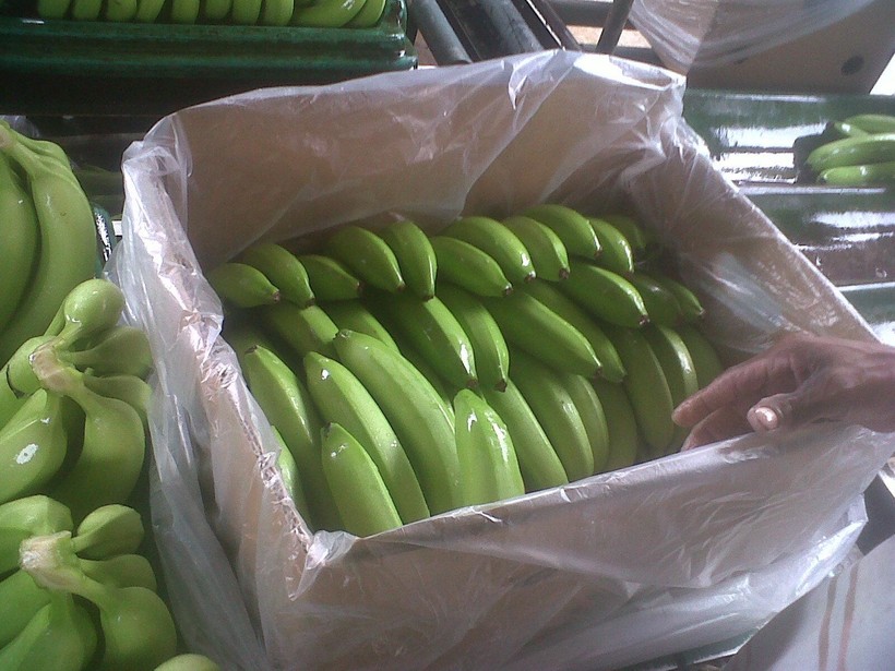 Зеленые бананы путешествуют в специальных рефрижераторах при температуре около +15ºС. В таких условиях они не подвергаются гниению, но и дозревания также не происходит, то есть по прибытии в порт назначения бананы остаются в том же зеленом виде, в каком отправились из тропиков. В таком же виде они поступают и в крупные торговые сети, которые занимаются последующей розничной продажей.