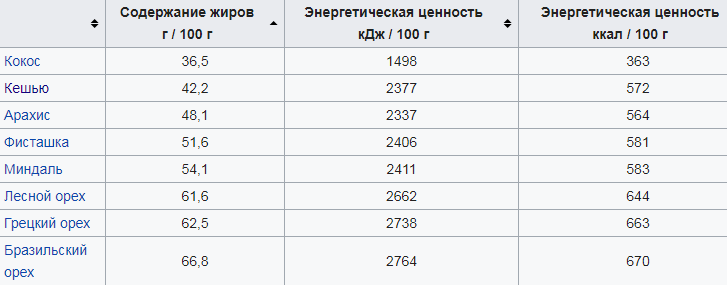 По сравнению с другими ореховыми плодами, такими как кешью, фундук, миндаль или грецкий орех, мякоть кокосового ореха обладает меньшей калорийностью и содержит меньшее количество жиров на 100 граммов веса.