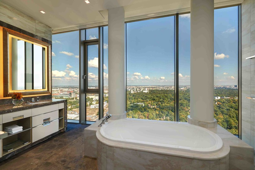 Президентский номер класса «люкс» на высоте 118 метров над уровнем земли в отеле Waldorf Astoria Berlin — это самый высоко расположенный номер данной категории в городе. Именно поэтому отсюда можно наслаждаться невероятными видами из панорамных окон, и для этого совсем не обязательно вылезать из ванной! Взору гостей открываются знаковые достопримечательности Берлина: Бранденбургские ворота, Берлинский Собор и парк Тиргартен.