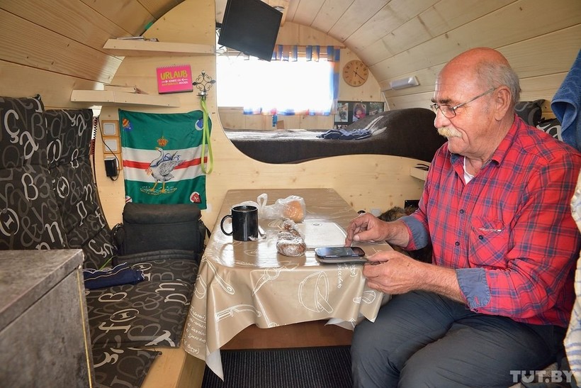 Трактор у Хуберта непростой: это настоящий раритет Lanz Bulldog 1936 года выпуска. Пенсионер сам его отреставрировал и прикрепил к нему небольшой дом в виде пивной бочки. В нем он отдыхает от дороги, готовит себе еду, спит. Компанию мужчине составляет такса по кличке Хекс.