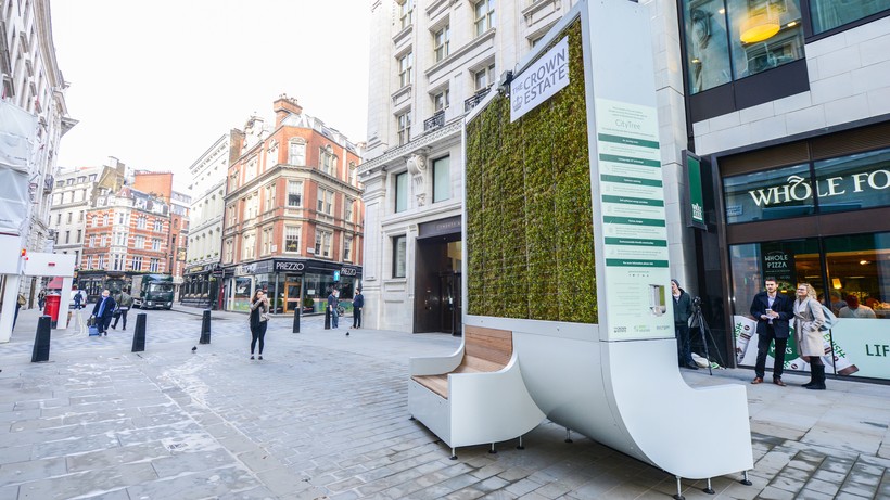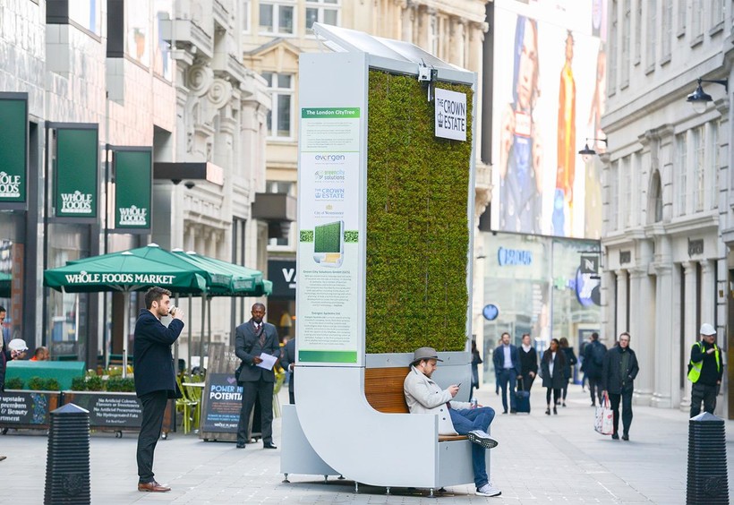 По заверениям разработчиков, немецкой компании Green City Solutions, одна такая скамейка со стеной способна заменить 275 деревьев. Столь высокая эффективность очистки воздуха обеспечивается наличием мха. Стена площадью 1,5 кв.м заполнена живым мхом, который дышит, растет и при этом поглощает из воздуха частицы загрязнителей. Оксиды азота и углекислый газ, содержащиеся в лондонском воздухе, растение превращает в кислород. Высокая эффективность стены из мха обусловлена тем, что это растение имеет разветвленную структуру, а следовательно большую площадь поверхности, которая контактирует с загрязненным воздухом.