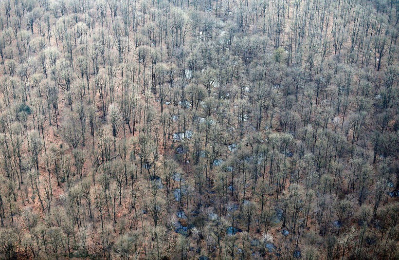 Такой рельеф образовался здесь от разрыва артиллерийских снарядов (Верден, Франция).