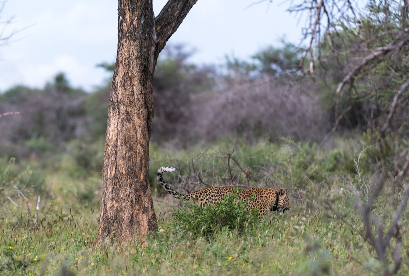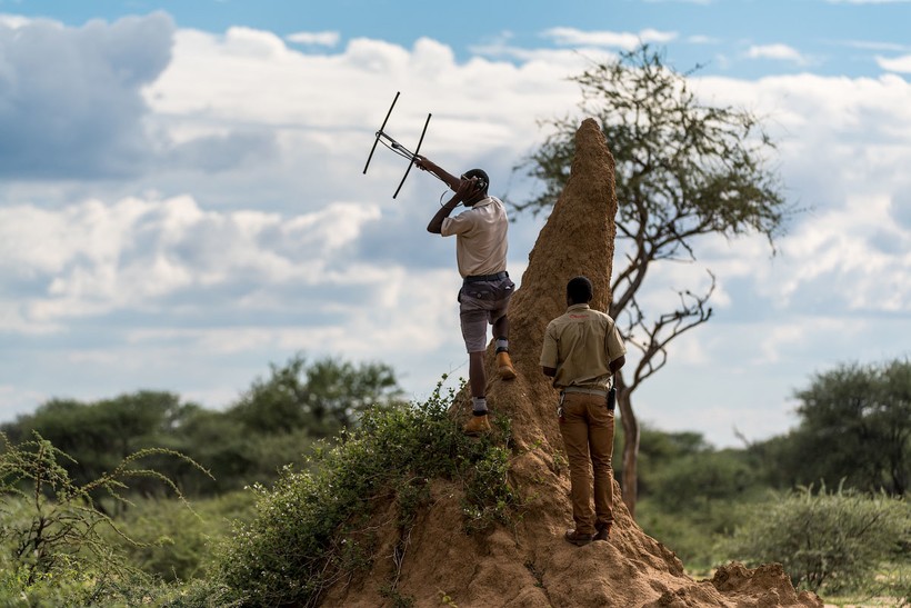 «Дикие» леопарды и гепарды носят ошейники, которые излучают радиоволны на несколько километров вокруг себя. Батарейки хватает на пару лет, потом леопарда усыпляют и меняют ему батарейку.