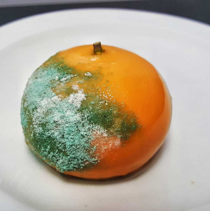 Апельсиновое парфе и пудра из меренги со вкусом жвачки.