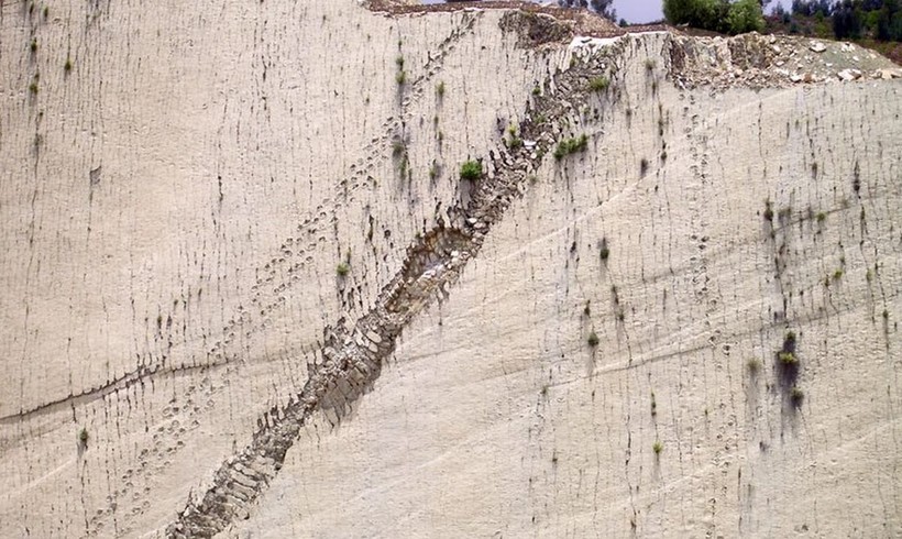 На отвесной скале высотой 80 метров и более километра в длину проложено несколько троп, по которым прослеживаются следы взрослых животных и их детенышей. По мнению исследователей, динозавры обитали в этой местности во второй половине мелового периода. Получается, что животные, которые наследили здесь, обитали около 100-65 миллионов лет назад. Но как отпечатки лап вымерших рептилий оказались на отвесной скале?