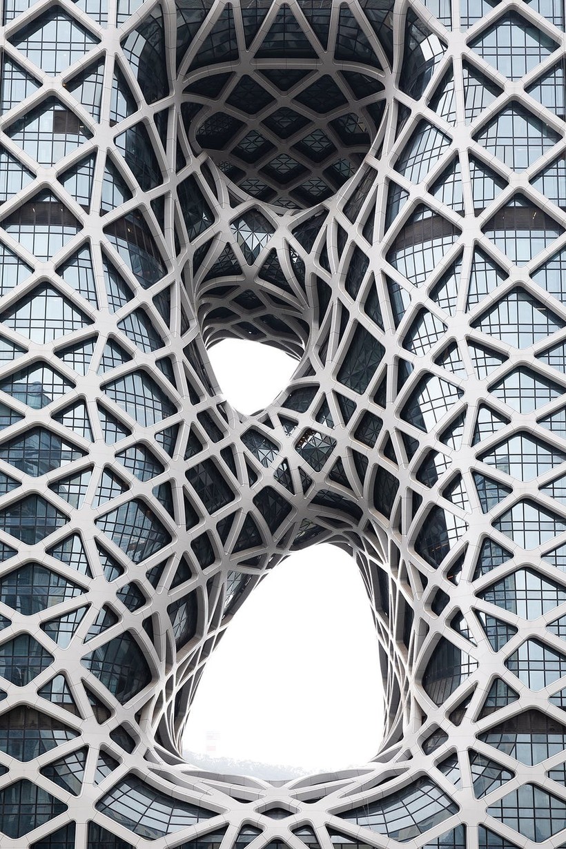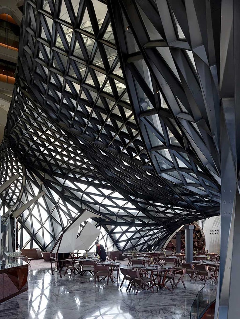 На создание такого удивительного здания архитекторов вдохновили текучие формы и плавные линии, присущие искусству традиционной китайской резьбы. Вертикальная постройка имеет 2 башни, соединенные переходами, которые формируют пустоты в фасаде. «Эти пустоты создают своеобразное «городское окно», которое связывает внутреннее жилое пространство отеля с городом», — говорится в описании Zaha Hadid Architects. Стоит отметить, что архитекторы компании выполнили свое задание мастерски. Они не только использовали существующие конструкции, которые были созданы на этом месте для постройки кондоминиумов, архитекторы смогли создать потрясающий отель, не нарушив ограничение по высоте здания в 160 метров. Это максимальная высота, допустимая местными кодами планирования.