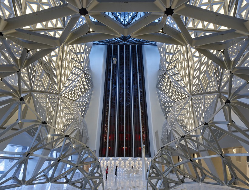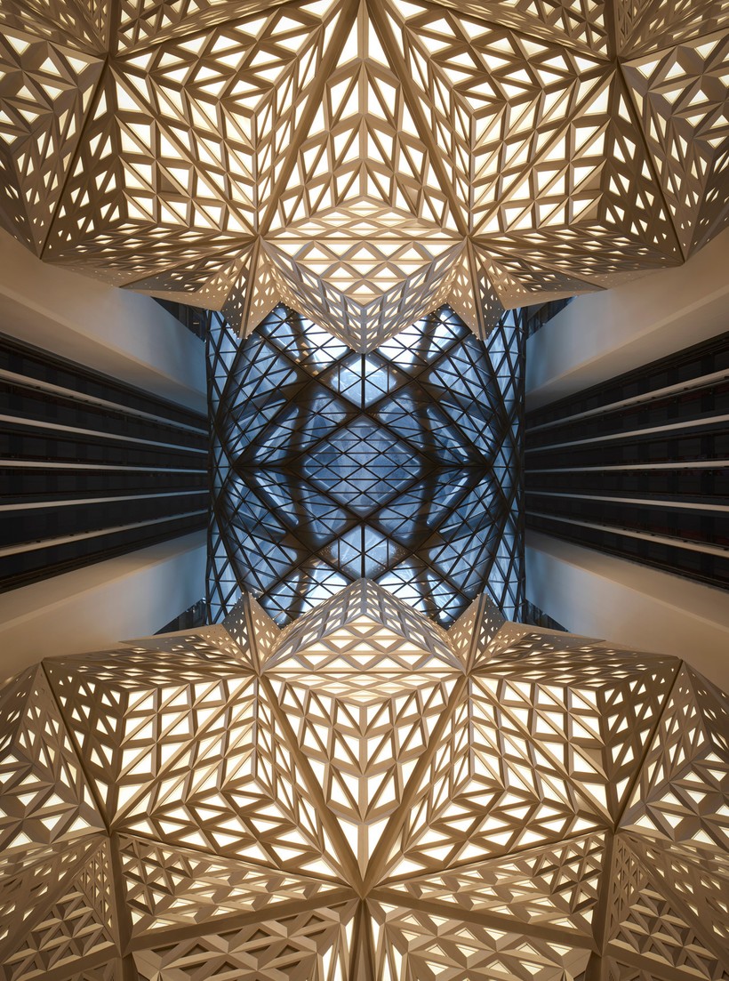 Свет, проникающий через пустоты, придает пространству удивительную динамичность. Благодаря 12 стеклянным лифтам гости отеля могут насладиться захватывающими видами на город, которые особенно впечатляют во время рассвета или заката.
