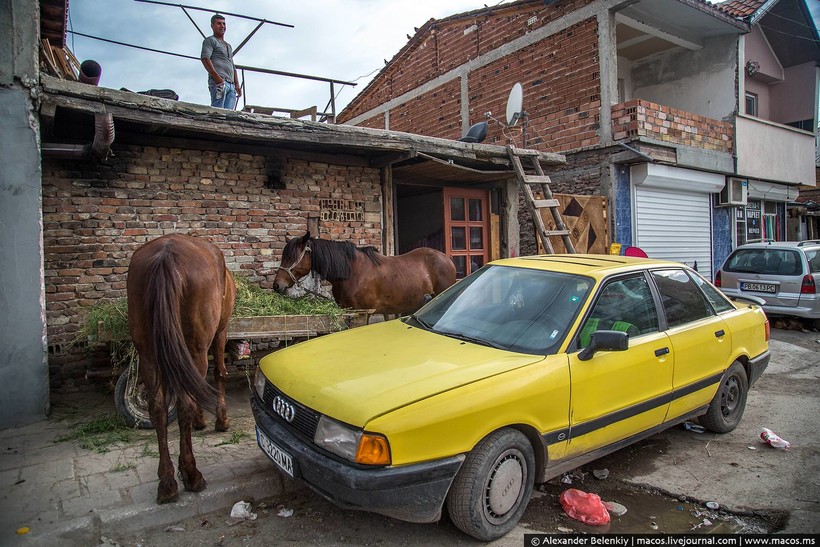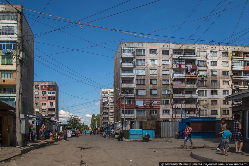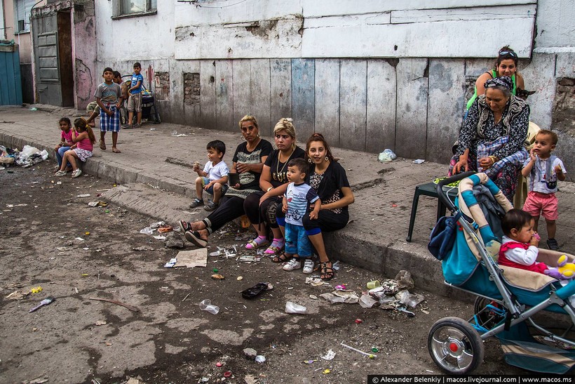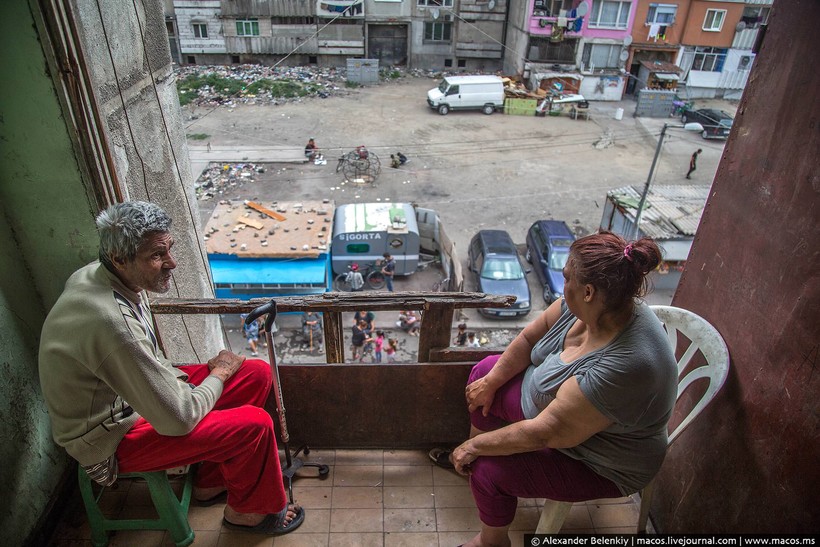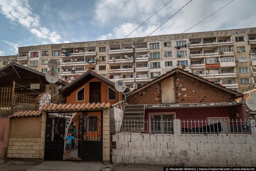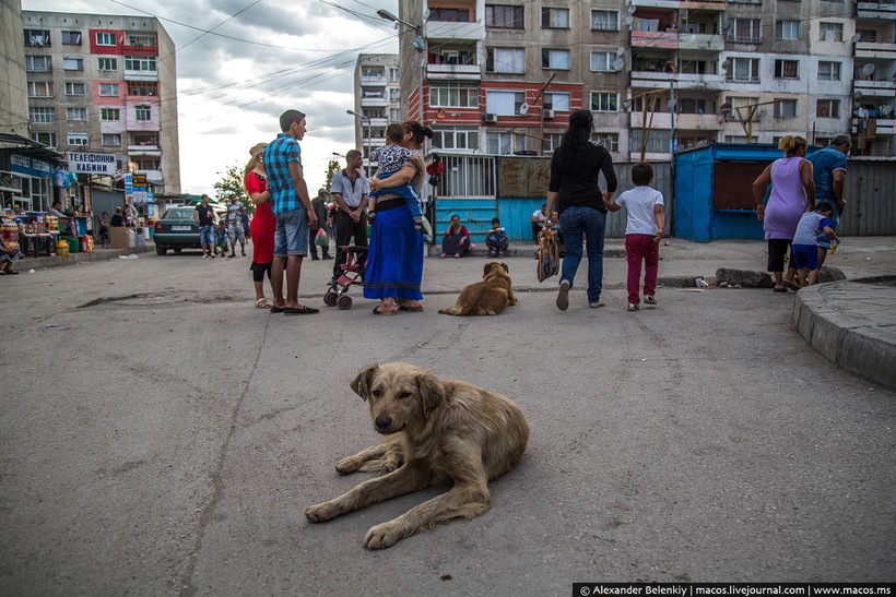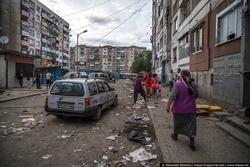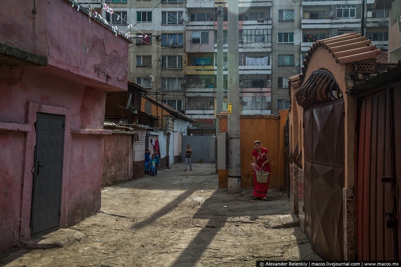 14. В Болгарии много цыганских кварталов, но Столипиново уникально. Обычно они живут в частном секторе, напоминающем своей убогостью индийские трущобы. Здесь же цыгане массово обитают в привычных советских девятиэтажках. Пространство между домами, которое у нас используется для школ, детских садов и магазинов, здесь давно застроено частными домами. Все они нелегальны.