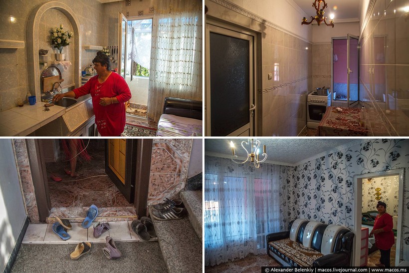 18. И довольно приличное жилье, на входе разуваются. Отличная квартира, если не учитывать того, что в ней живут человек десять, все стены и полы отделаны плиткой, а вода из крана течет с песком.
