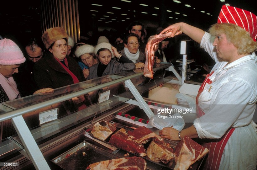Свежее мясо стоит около $7 за кг........................можно купить 70 кг (а не 56, как в СССР).
