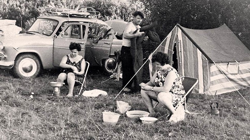 Основной объем этих вещей занимала, конечно, палатка. Это сейчас она маленькая и компактная, раньше же она представляла собой огромную брезентовую конструкцию, под которую уходила половина багажника. Кроме того, не стоит забывать и о прочем туристическом инвентаре: спальные мешки, горелка, посуда, емкость для воды, раскладные стулья и так далее. Кажется, что такой объем вещей способен уместиться только в микроавтобус. Но наши бабушки и дедушки находили способы запихнуть все это в «Москвич» или даже горбатый «Запорожец».