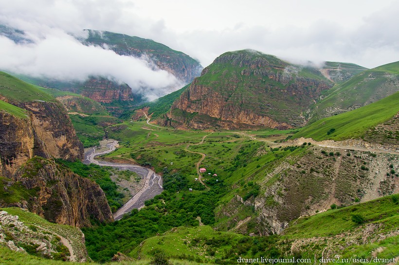 Из Хыналыга мы спускаемся в долину кругом, через горы, по грунтовой дороге. И вот она точно самая красивая в этом путешествии: