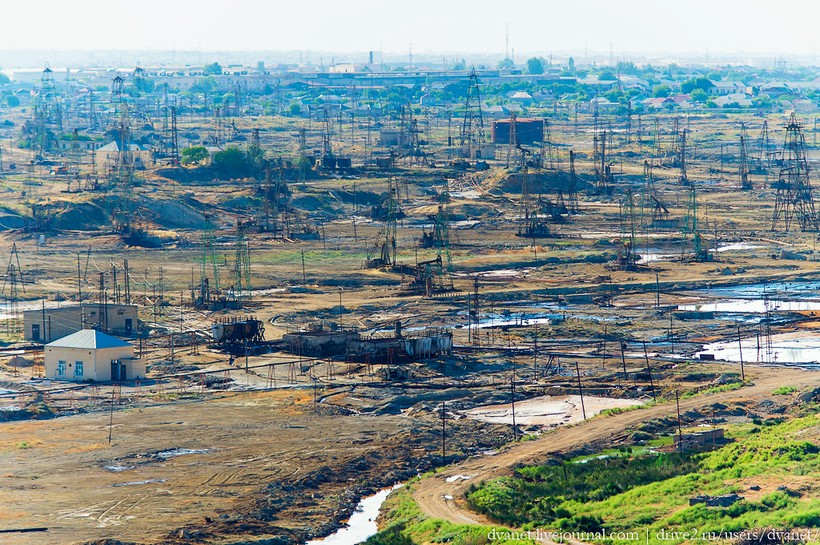 Обратная сторона медали. Либо опора ЛЭП, либо нефтекачка, и так до горизонта. Вот примерно так я представлял себе Баку 100 лет назад, когда черпали нефть буквально ведрами из каждой лужи.