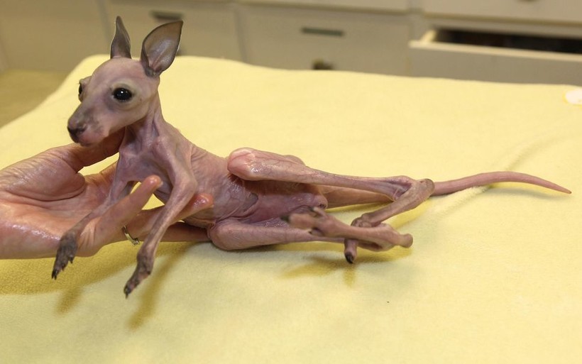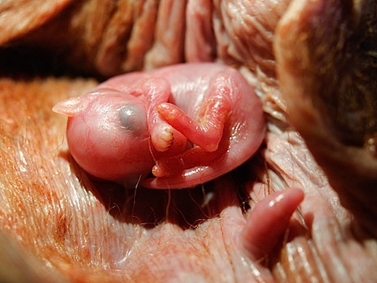 Кенгурята появляются на свет в стадии эмбриона после кратковременной беременности, длящейся, как правило, 25-40 дней. И в этих малышах совершенно невозможно узнать кенгуру: глаза закрыты, ушей нет, задние лапы и хвост похожи на обрубки, вместо рта — маленькая дырочка. Существо, больше похожее на червячка даже своим цветом и размером: новорожденные едва превышают два сантиметра и весят меньше грамма.