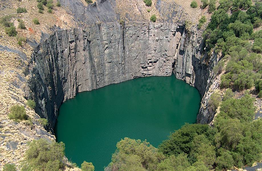 Этот заброшенный карьер просто потрясает своими размерами, ведь его ширина составляет 463 метра, а глубина на момент разработок составляла 240 метров. Но самое поразительное это то, что этот карьер имеет рукотворное происхождение: вся эта масса горных пород была извлечена и переработана вручную, с применением одних только лопат и мотыг. Жажда алмазов влекла сюда тысячи людей, которые день за днем под палящим солнцем, в воде и в грязи перекапывали содержимое кимберлитовой трубки в надежде найти драгоценный камень. И многим старателям улыбалась удача, о чем говорит внушительный список драгоценных камней, обнаруженных более чем за сорокалетнюю историю рудника.