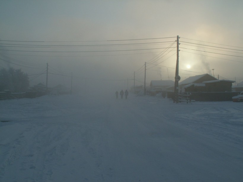 В этом месте, известном как северный полюс холода, средняя зимняя температура может достигать -60 градусов по Цельсию.