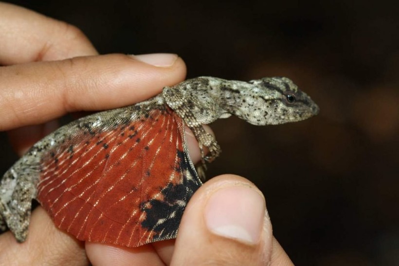 У летучих драконов имеются так называемые ложные ребра, которые поддерживают широкие кожные складки, выполняющие роль крыльев. Перед прыжком ребра выдвигаются и кожные мембраны по бокам принимают вид крыльев, образуя большую поддерживающую площадь. Длинный хвост и специальная кожная складка на горле служат дополнительными стабилизаторами при полете.