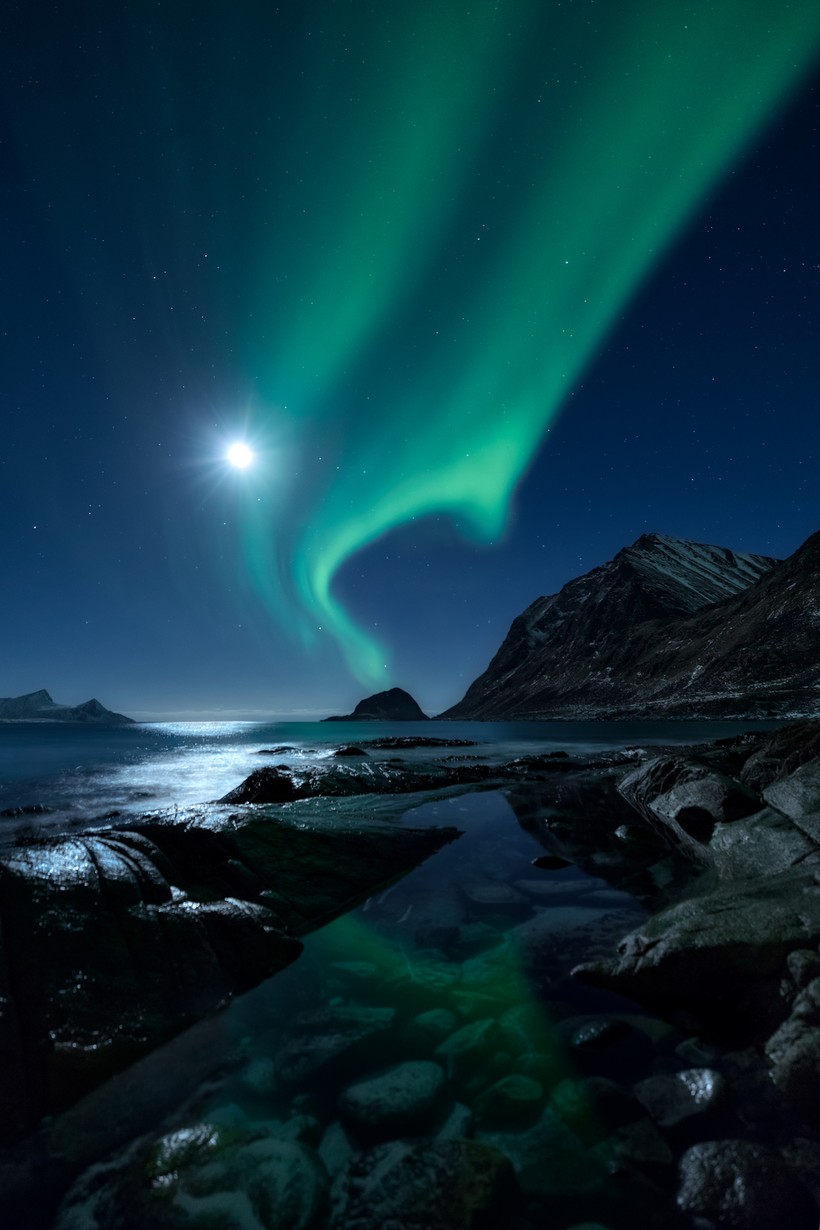 «Северное полярное сияние на побережье Баренцева моря». Михаил Завьялов, Россия.